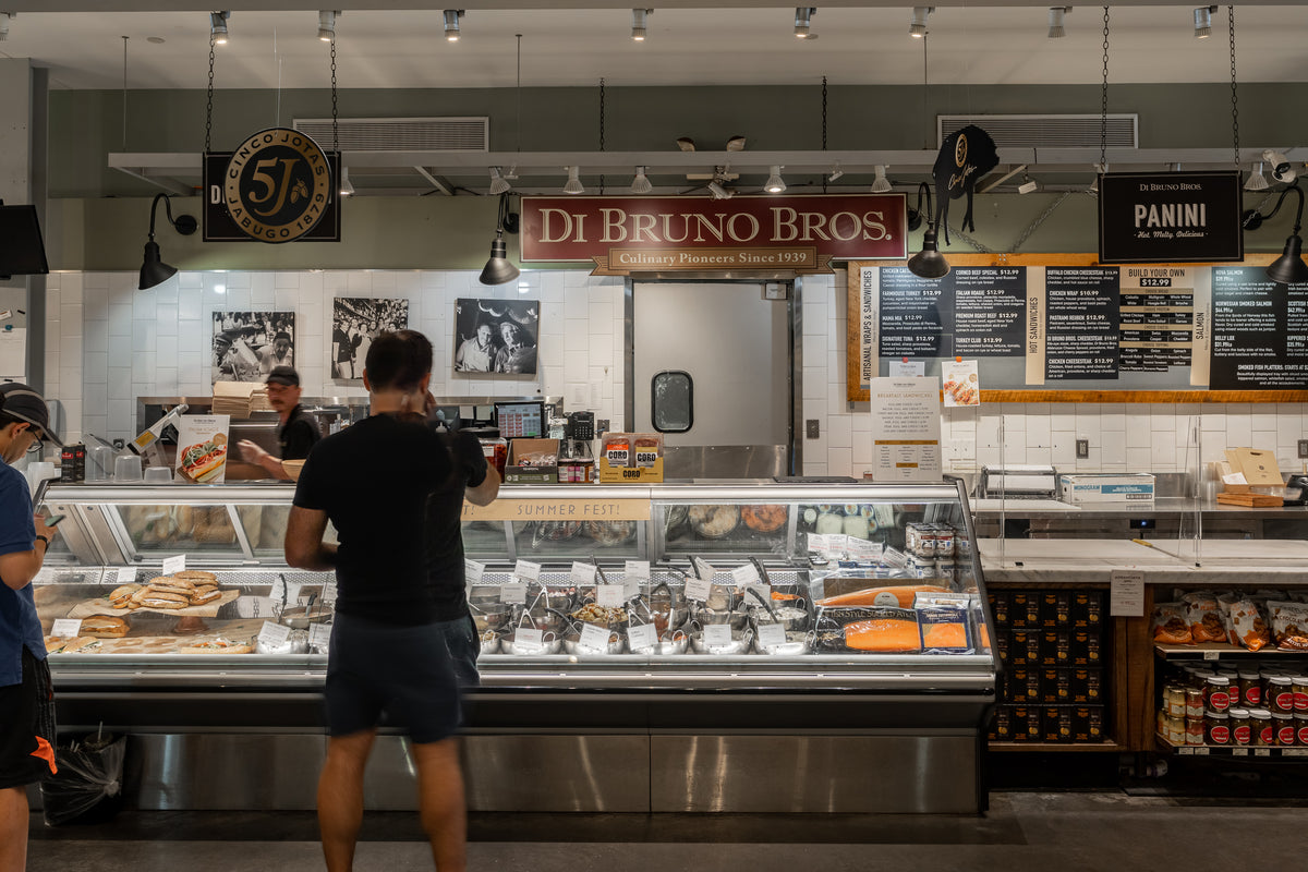 Nestled within the vibrant bustle of the Ardmore Farmers Market, Di Bruno Bros. offers a taste of their gourmet world and a convenient spot for your daily needs. Here, amidst the market's lively energy, you can explore a carefully selected array of artisanal cheeses, cured meats, and specialty goods, plus shop for everyday groceries. Start your day with a fresh bagel and schmear, grab a perfectly brewed coffee, and then explore the day's offerings with the help of our knowledgeable staff. It's a condensed, yet complete Di Bruno Bros. experience, bringing our signature flavors and passion for fine food to the heart of Ardmore's community.